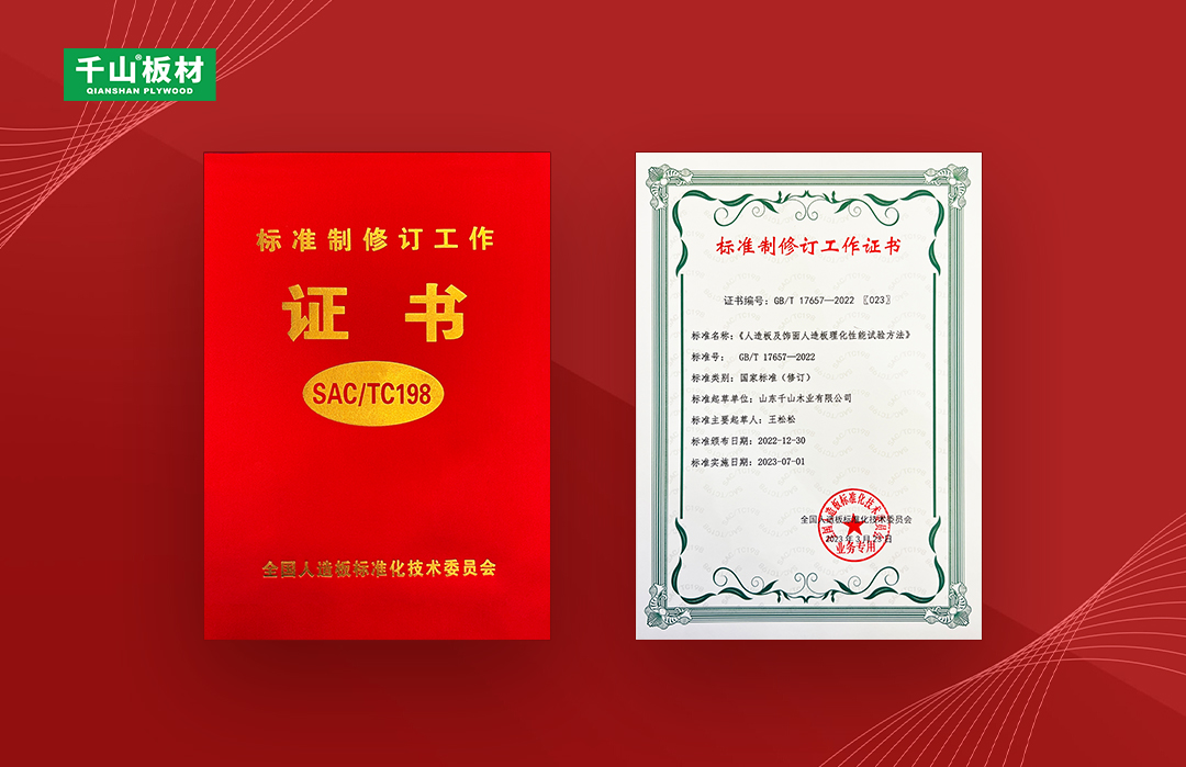 3月22日-24日,由全國(guó)人造板標(biāo)準(zhǔn)化技術(shù)委員會(huì)、中國(guó)林業(yè)科學(xué)研究院木材工業(yè)研究所、林業(yè)產(chǎn)業(yè)標(biāo)準(zhǔn)化國(guó)家創(chuàng)新聯(lián)盟主辦的《人造板及飾面人造板理化性能試驗(yàn)方法》等新頒布標(biāo)準(zhǔn)宣貫培訓(xùn)暨產(chǎn)業(yè)發(fā)展研討會(huì)在浙江南潯召開(kāi),千山應(yīng)邀出席并獲頒國(guó)家標(biāo)準(zhǔn)制修訂工作證書(shū)。中國(guó)林科院木材工業(yè)研究所家具與木制品研究室主任、研究員龍玲介紹了