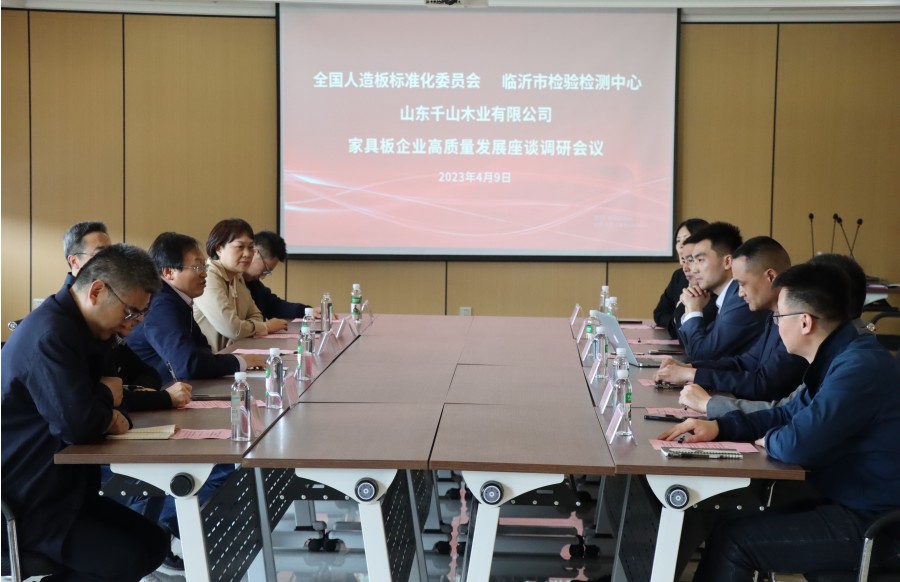 4月9日下午,全國(guó)人造板標(biāo)準(zhǔn)化技術(shù)委員會(huì)副主任兼秘書(shū)長(zhǎng)研究員段新芳,副秘書(shū)長(zhǎng)李曉玲,臨沂市檢驗(yàn)檢測(cè)中心黨組書(shū)記、主任劉愛(ài)友,黨組成員、副主任黃波,市檢驗(yàn)檢測(cè)中心質(zhì)檢所所長(zhǎng)竇興霞及相關(guān)專業(yè)技術(shù)人員蒞臨千山木業(yè)進(jìn)行調(diào)研。 領(lǐng)導(dǎo)一行先后參觀了千山新建自動(dòng)化生態(tài)板生產(chǎn)車(chē)間、高標(biāo)準(zhǔn)成品庫(kù)、國(guó)內(nèi)先進(jìn)的浸漬膠膜紙飾