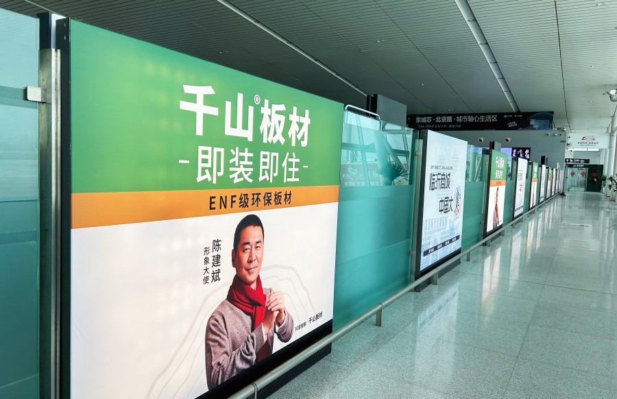 機(jī)場(chǎng)作為一個(gè)城市或地區(qū)對(duì)外交流的窗口,具有很深的城市烙印,可以有效展示地區(qū)特色和城市形象。為了有效賦能家具廠,加大提升品牌形象,近日,千山以高端品牌形象強(qiáng)勢(shì)登陸臨沂機(jī)場(chǎng)。借助其高客流量、高影響力,以點(diǎn)帶面,輻射全國(guó)。此次機(jī)場(chǎng)廣告,呈現(xiàn)在具有強(qiáng)大視覺(jué)沖擊力的達(dá)廳走廊,11個(gè)大型廣告展示牌帶來(lái)全新視覺(jué)體驗(yàn)。&nbs