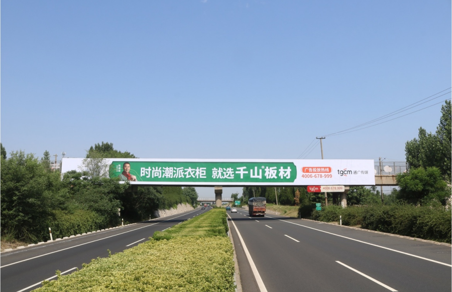 近日,千山在山東省重點(diǎn)高速路段投放14座跨線橋和立柱媒體廣告,再次橫跨山東省內(nèi)多條主干線,如泰新高速、京臺(tái)高速、日蘭高速、青銀高速等,覆蓋山東省及其他省市區(qū)域。高速?gòu)V告形式依舊涵蓋跨線橋、單立柱等,廣告畫(huà)面鮮艷,以綠色為主色調(diào),可視距離美觀、簡(jiǎn)潔,進(jìn)一步將“時(shí)尚潮派衣柜 就選千山板材”的品牌主張傳遞給更多的消費(fèi)