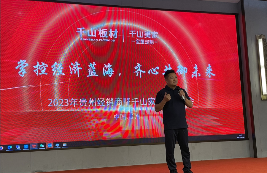 7月31日,千山2023年貴州經(jīng)銷商暨千山家具板招商會在貴陽隆重啟幕。本次大會以“掌控經(jīng)濟藍海 齊心共御未來”為主題,進行產(chǎn)品培訓、優(yōu)秀經(jīng)銷商頒獎、政策宣講等多項活動。100余名貴州經(jīng)銷商、家具廠大咖齊聚,聚焦家具板發(fā)展趨勢,共商合作。