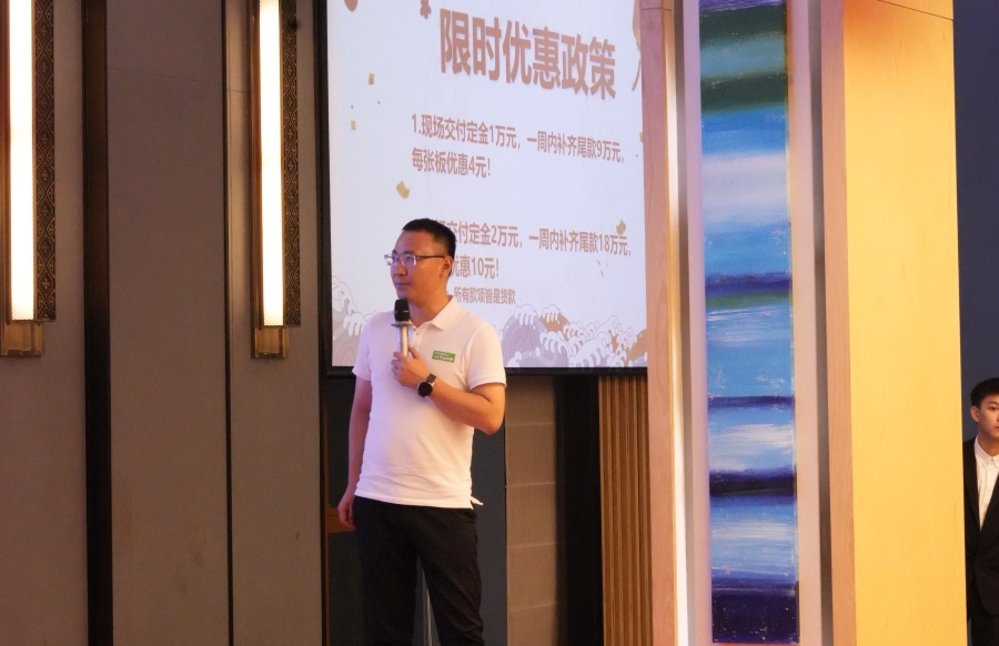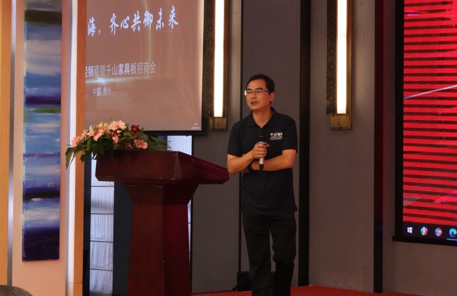 大會現(xiàn)場,滿經(jīng)理對家具板招商政策進行詳細解讀。對于合作家具廠,千山將提供全方位的政策支持,包括樣冊支持、樣柜支持、區(qū)域保護、培訓支持、廣告支持、抖音扶持、訂單引流 ,積極助力市場開拓和產(chǎn)品推廣。