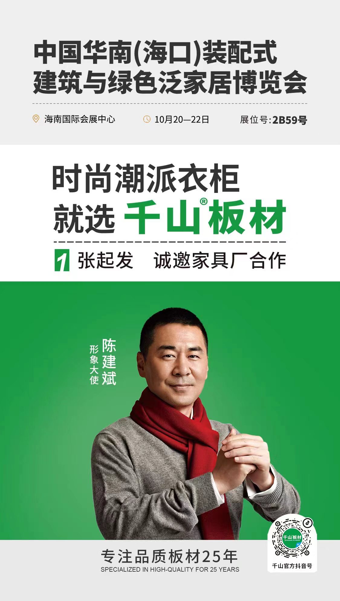 2023年10月20日,中國華南(海口)裝配式建筑與綠色泛家居博覽會暨中國推動建筑產(chǎn)業(yè)現(xiàn)代化技術(shù)交流大會在海南國際會展中心拉開序幕。展會為期3天,千山與數(shù)個建材品牌同臺競技,各展風(fēng)采,探尋行業(yè)發(fā)展新趨勢,致力于為消費者帶來更優(yōu)質(zhì)的家居服務(wù)!