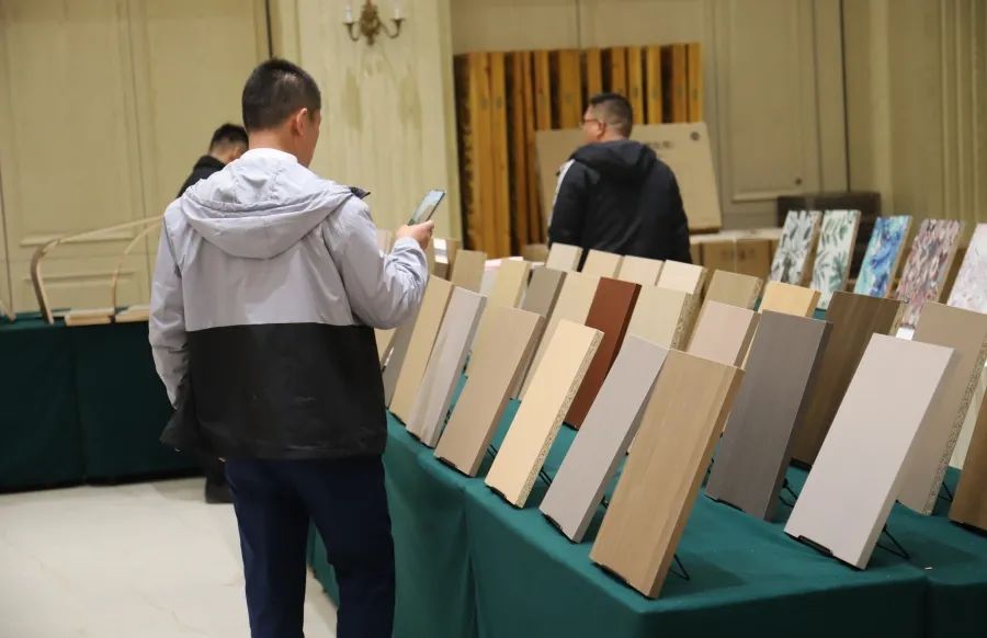 活動現(xiàn)場設(shè)置了產(chǎn)品、樣冊展示區(qū),嘉賓們仔細(xì)參觀,共同感受千山板材全系列新品的無上魅力。