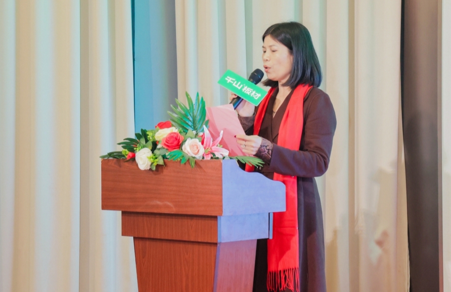 千山板材衡陽倉負(fù)責(zé)人肖小燕登臺致辭,肖總感謝各位經(jīng)銷商、合作伙伴撥冗而至。肖總表示,衡陽市場的蓬勃發(fā)展,離不開所有伙伴的傾力扶持和砥礪拼搏,并以實力、以信心收獲了屬于千山人的累累碩果。