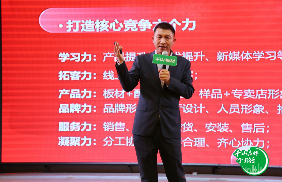 千山品牌事業(yè)部總經(jīng)理王松致辭,王總給大家梳理了千山的營銷規(guī)劃、品牌戰(zhàn)略與發(fā)展目標(biāo)。王總表示,在做大做強(qiáng)的路上,千山將始終矢志不渝地踐行品牌使命,不斷優(yōu)化提升產(chǎn)品體系,和全國合作伙伴攜手,共創(chuàng)共贏。