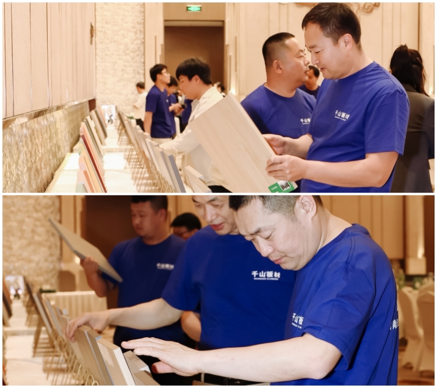 下午5點,合作伙伴們陸續(xù)到達活動現(xiàn)場,在千山板材風(fēng)采展示墻簽到并合影留念。隨后,伙伴們來到千山板材樣品展示區(qū),仔細參觀2024款系列產(chǎn)品。