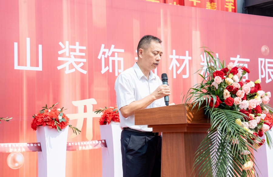 慶典現(xiàn)場(chǎng),融安縣人民政府副縣長(zhǎng)陳遠(yuǎn)昭、融安縣工業(yè)集中區(qū)管理委員會(huì)副主任藍(lán)代勛、融安縣香杉協(xié)會(huì)秘書長(zhǎng)韋軍先后致辭,為廣西千山裝飾新材料有限公司的正式開業(yè)表示熱烈的祝賀,并送上了美好的祝福。