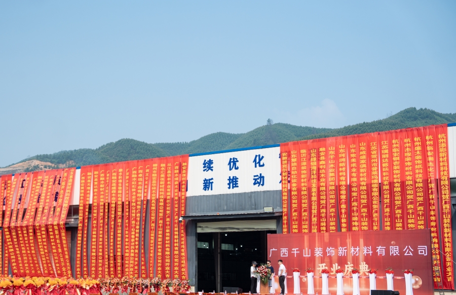 2024年5月25日,千山集團(tuán)廣西生產(chǎn)基地——廣西千山裝飾新材料有限公司終于揭開神秘面紗,在廣西融安縣浮石工業(yè)園區(qū)正式落地,開業(yè)典禮于公司園區(qū)盛大舉行!