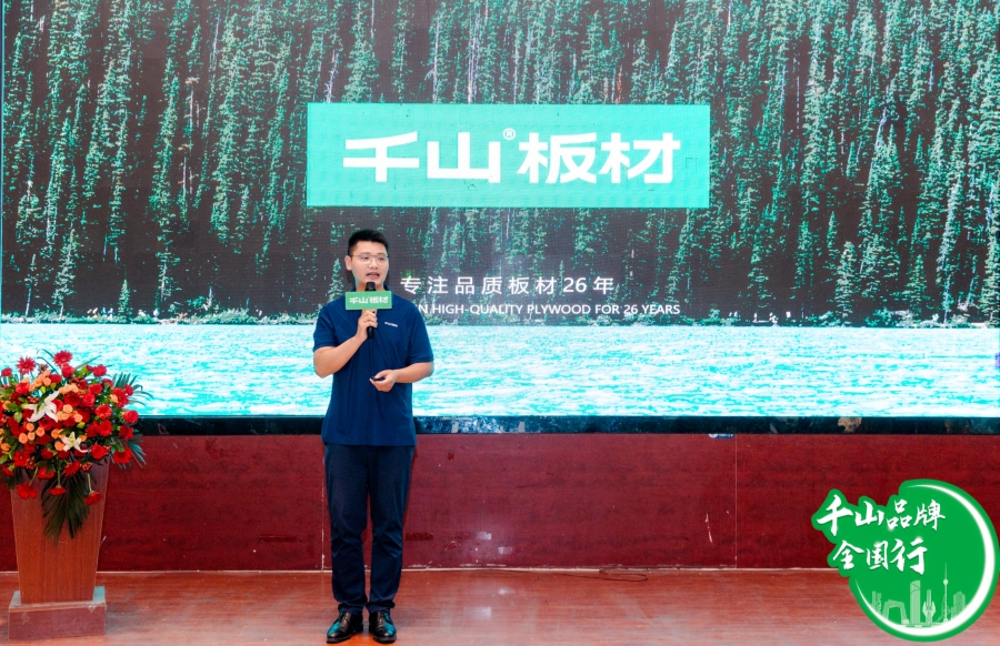 千山板材大區(qū)經(jīng)理王殿忠致辭。王經(jīng)理分享到,2024年,千山以強勁的市場響應(yīng)速度,打造形成更完整的產(chǎn)品體系,并以“現(xiàn)貨庫存 1張起發(fā)”的現(xiàn)貨倉布局為經(jīng)銷商及合作伙伴注入新的發(fā)展動能。