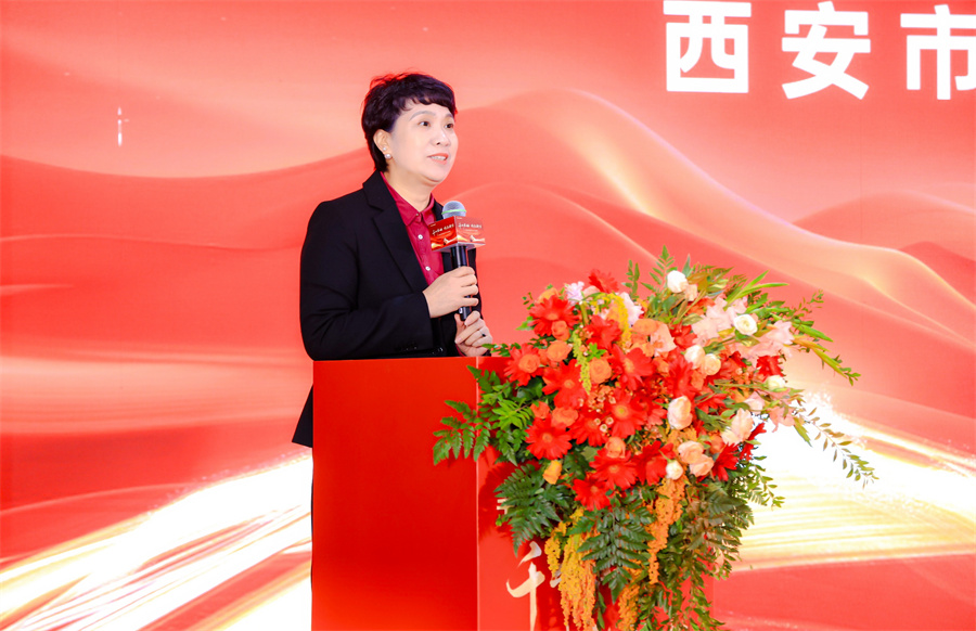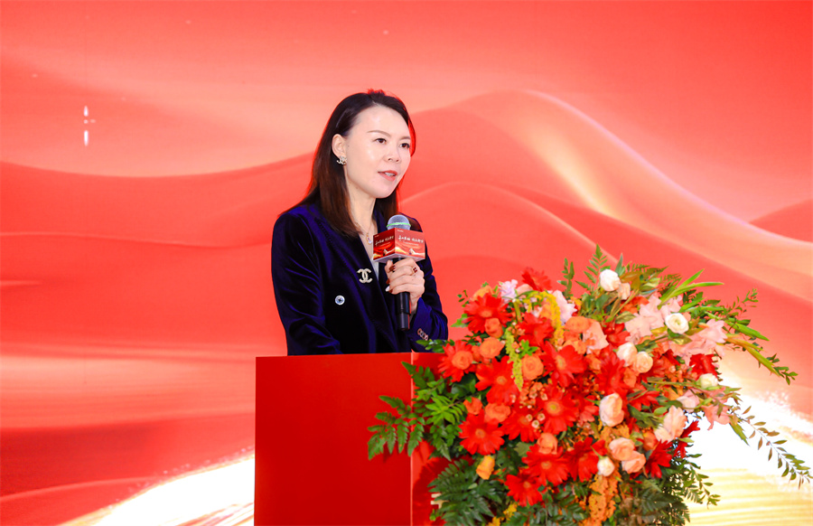 西安市酒店用品行業(yè)協(xié)會會長王勤女士上臺致辭。王會長表達了對千山板材陜西倉落地西安的祝賀,期望千山板材陜西倉能繼續(xù)以高品質(zhì)的產(chǎn)品服務(wù)回饋消費者,賦能推動西北家具行業(yè)的發(fā)展。