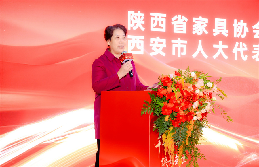 陜西省家具協(xié)會會長靳喜鳳女士上臺致辭。靳會長為陜西倉送上了開業(yè)祝福并表示,千山板材陜西倉是對家具產(chǎn)業(yè)鏈優(yōu)化和服務(wù)升級的積極探索,是連接消費者與優(yōu)質(zhì)家具產(chǎn)品的橋梁,將為陜西家具市場注入新的活力。