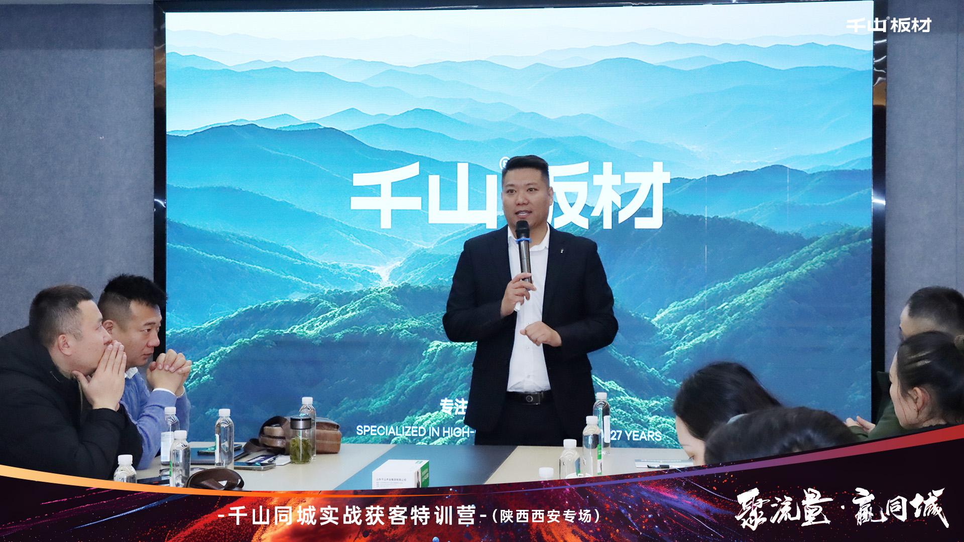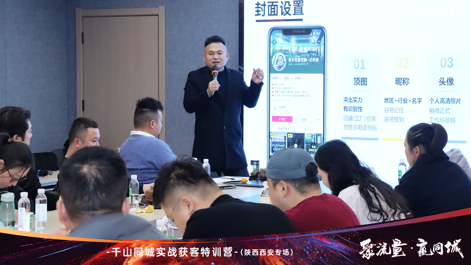 跟上新賽道風向,拓展流量致勝渠道。活動開始,千山板材陜西倉總經(jīng)理王國棟致辭。王總表示:面對新媒體發(fā)展浪潮,我們要轉(zhuǎn)變營銷思維,積極布局抖音同城,打通線上的獲客轉(zhuǎn)化。