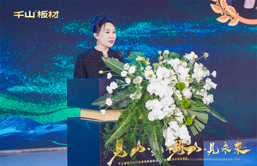 千山集團(tuán)副董事長劉玉蓮發(fā)表致辭。劉董表示,2025年將是千山品牌的“進(jìn)階之年”,將依托品牌力、產(chǎn)品力、營銷力、智造力四大綱領(lǐng),持續(xù)優(yōu)化產(chǎn)品與服務(wù),與優(yōu)質(zhì)供應(yīng)商、合作伙伴開展深度合作,以精準(zhǔn)戰(zhàn)略、產(chǎn)品布局、精銳團(tuán)隊三大攻堅力量共同決勝未來。