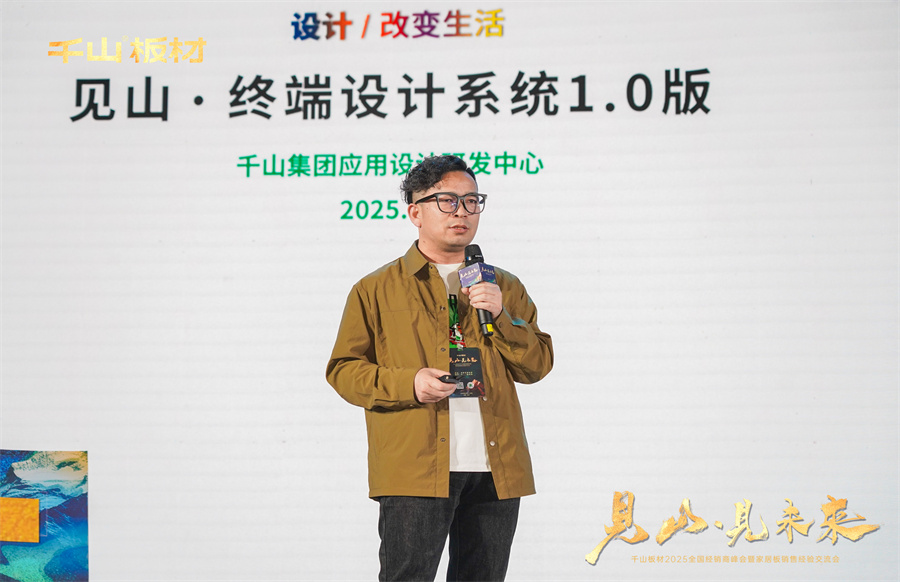 千山應(yīng)用設(shè)計研發(fā)中心朱云周總監(jiān)詳細(xì)闡述了“見山-終端設(shè)計系統(tǒng)1.0版”,基于風(fēng)格邏輯、色彩邏輯、材質(zhì)邏輯打通終端應(yīng)用,確保落地場景的呈現(xiàn)效果,賦能終端來解決客戶需求的痛點(diǎn)問題,從而有效助力經(jīng)銷商的運(yùn)營發(fā)展。