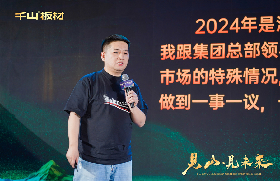 千山板材優(yōu)秀大商代表袁琳、馬良臣、蘇東方、孫丁娟、周志軍從家具板精細(xì)化運(yùn)營、創(chuàng)新模式、自媒體賦能等多個角度,向在場的經(jīng)銷商家人們分享了寶貴的經(jīng)營經(jīng)驗,帶給大家新的行業(yè)啟發(fā)與思考,鼓勵經(jīng)銷商家人們敢于超越自我,共同迎接市場機(jī)遇。