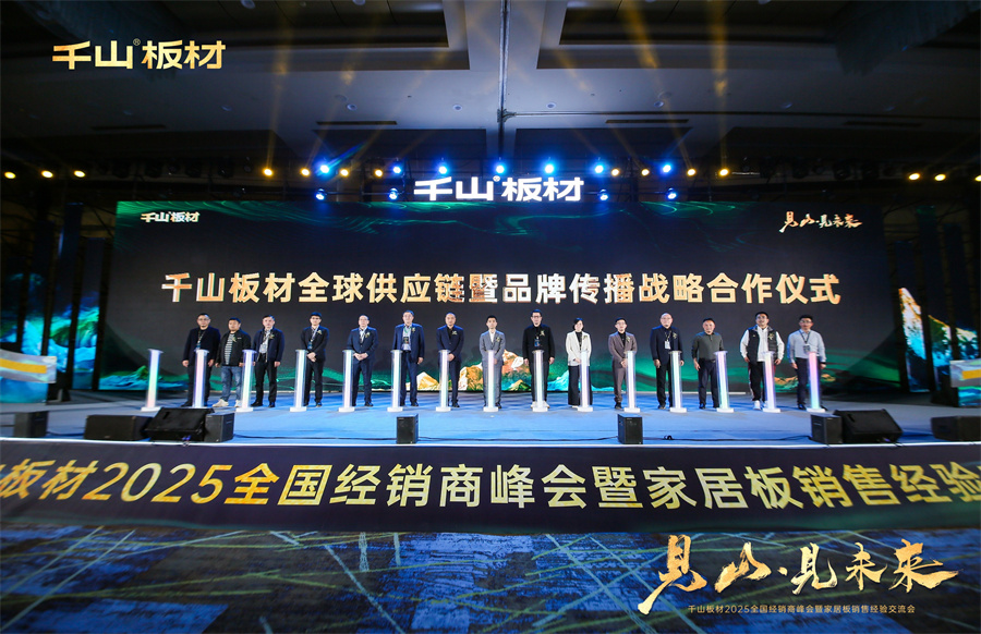 品質(zhì)為基,聲量為翼!在堅守匠心的同時,千山板材正以雷霆之勢開啟品牌傳播的新篇章!千山集團(tuán)副總經(jīng)理王松、千山集團(tuán)副總經(jīng)理邱佃樓與優(yōu)秀設(shè)備供應(yīng)商代表、優(yōu)秀品牌傳播媒體代表共同上臺,點(diǎn)亮全球供應(yīng)鏈暨品牌傳播戰(zhàn)略合作的璀璨時刻。