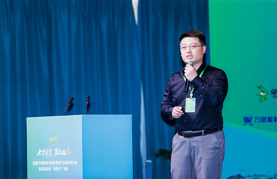 千山板材東南大區(qū)負(fù)責(zé)人董向陽(yáng)以《板材品牌綠色產(chǎn)業(yè)發(fā)展之路》為主題,解碼千山的高質(zhì)量發(fā)展之路。千山以“雙碳”戰(zhàn)略為引領(lǐng),構(gòu)建覆蓋全產(chǎn)業(yè)鏈的綠色發(fā)展體系,通過(guò)“綠色智造、低碳循環(huán)、價(jià)值共生”三大維度,實(shí)現(xiàn)產(chǎn)業(yè)升級(jí)與生態(tài)效益的雙向突破,打造出具有行業(yè)示范價(jià)值的可持續(xù)發(fā)展范式。