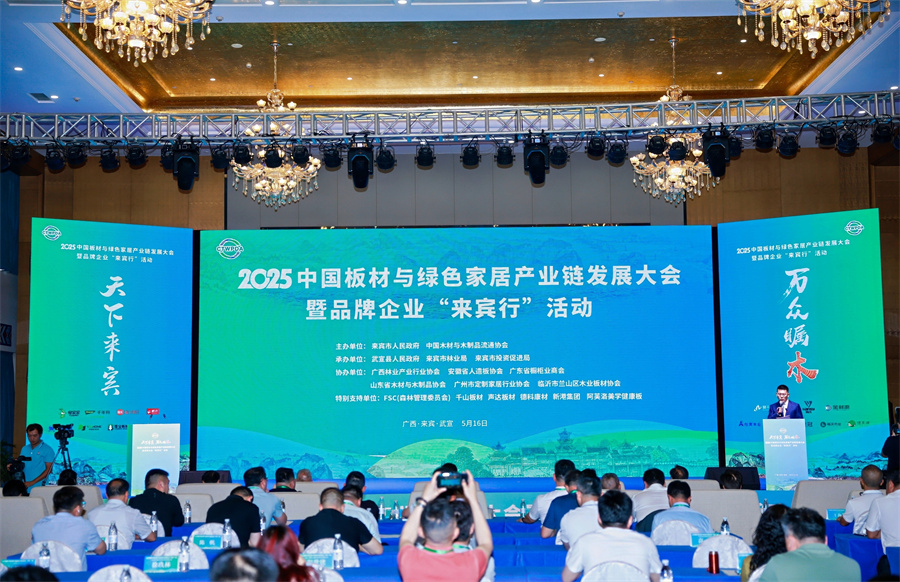 5月15—17日,“天下來(lái)賓·萬(wàn)眾矚木”2025中國(guó)板材與綠色家居產(chǎn)業(yè)鏈發(fā)展大會(huì)暨品牌企業(yè) “來(lái)賓行”活動(dòng)在廣西省來(lái)賓市武宣縣隆重舉行。本次大會(huì)由來(lái)賓市政府和中國(guó)木材與木制品流通協(xié)會(huì)共同主辦,大會(huì)同步舉行第四屆人造板流通品牌研討會(huì)。