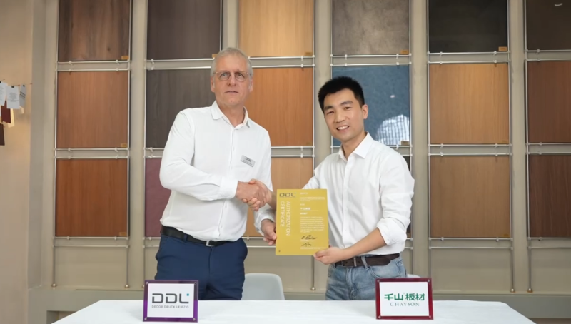 在千山板材展廳,德國(guó)DDL團(tuán)隊(duì)?wèi)?yīng)邀到訪,雙方舉行了隆重的授權(quán)簽約儀式,并圍繞產(chǎn)品創(chuàng)新、品牌共建展開深度對(duì)談。擁有六十三年歷史的DDL,是歐洲四面板設(shè)計(jì)與印刷領(lǐng)域的頂尖企業(yè),其設(shè)計(jì)實(shí)力與生產(chǎn)工藝享譽(yù)全球。