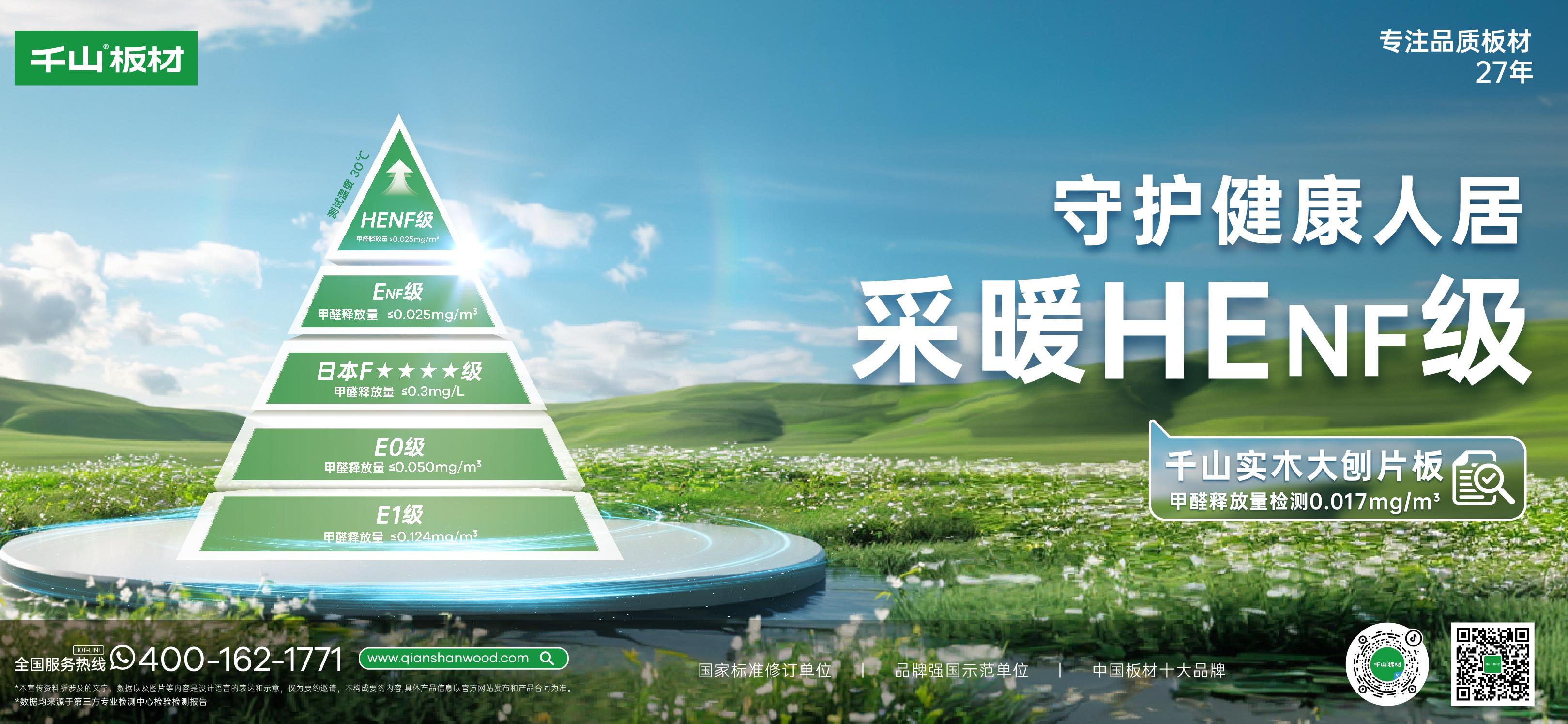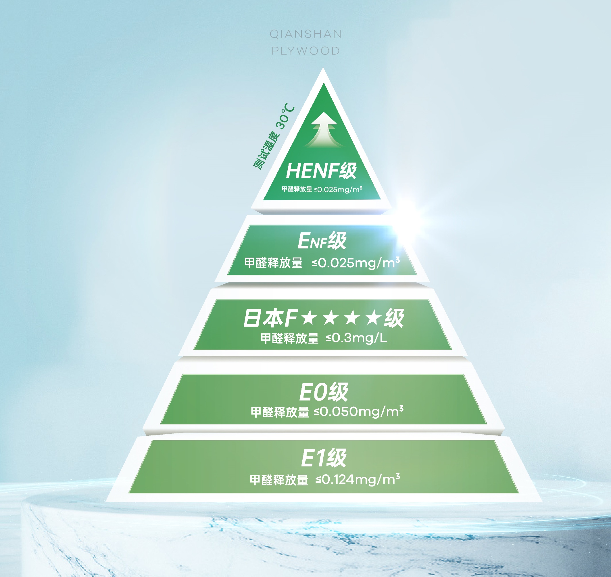 傳統(tǒng)板材環(huán)保標準多聚焦于常溫環(huán)境下的甲醛釋放量,而HEnf級的甲醛釋放量在30℃熱環(huán)境下被嚴格限制在0.025mg/m3以內,是中國林產工業(yè)協(xié)會于2022年5月31日發(fā)布的《采暖用人造板及其制品中甲醛釋放限量》(T/CNFPIA 1003-2022)標準中的最高等級。HENF級:環(huán)保的升級躍遷千山板材四大品類: