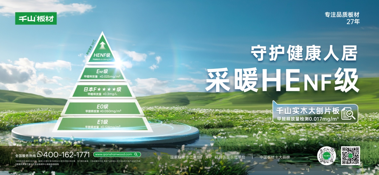 隨著冬季供暖后的溫度升高,甲醛、有害物質(zhì)殘留、氣味刺鼻等問題成為家庭裝修的“心頭大患”。而千山板材實木大刨片板達(dá)HENF“采暖無醛級”,更適合在采暖或高溫環(huán)境的家庭中使用,從源頭解決甲醛超標(biāo)問題。更高的環(huán)保標(biāo)準(zhǔn)——HENF采暖級環(huán)保HENF級標(biāo)準(zhǔn)是指人造板及其制品中的甲醛釋放量在30°環(huán)境下≤0.025mg/m
