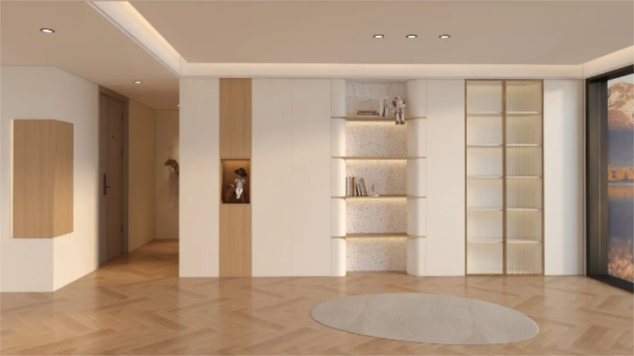 在推崇“高效極簡”生活理念的當下,門墻柜一體化作為家居領域的一次革新,順應了人們對生活品質與空間美學的追求,以突破格局界限、建立統(tǒng)一的空間視覺為手法,創(chuàng)造整體性和功能性更佳的居住體驗。