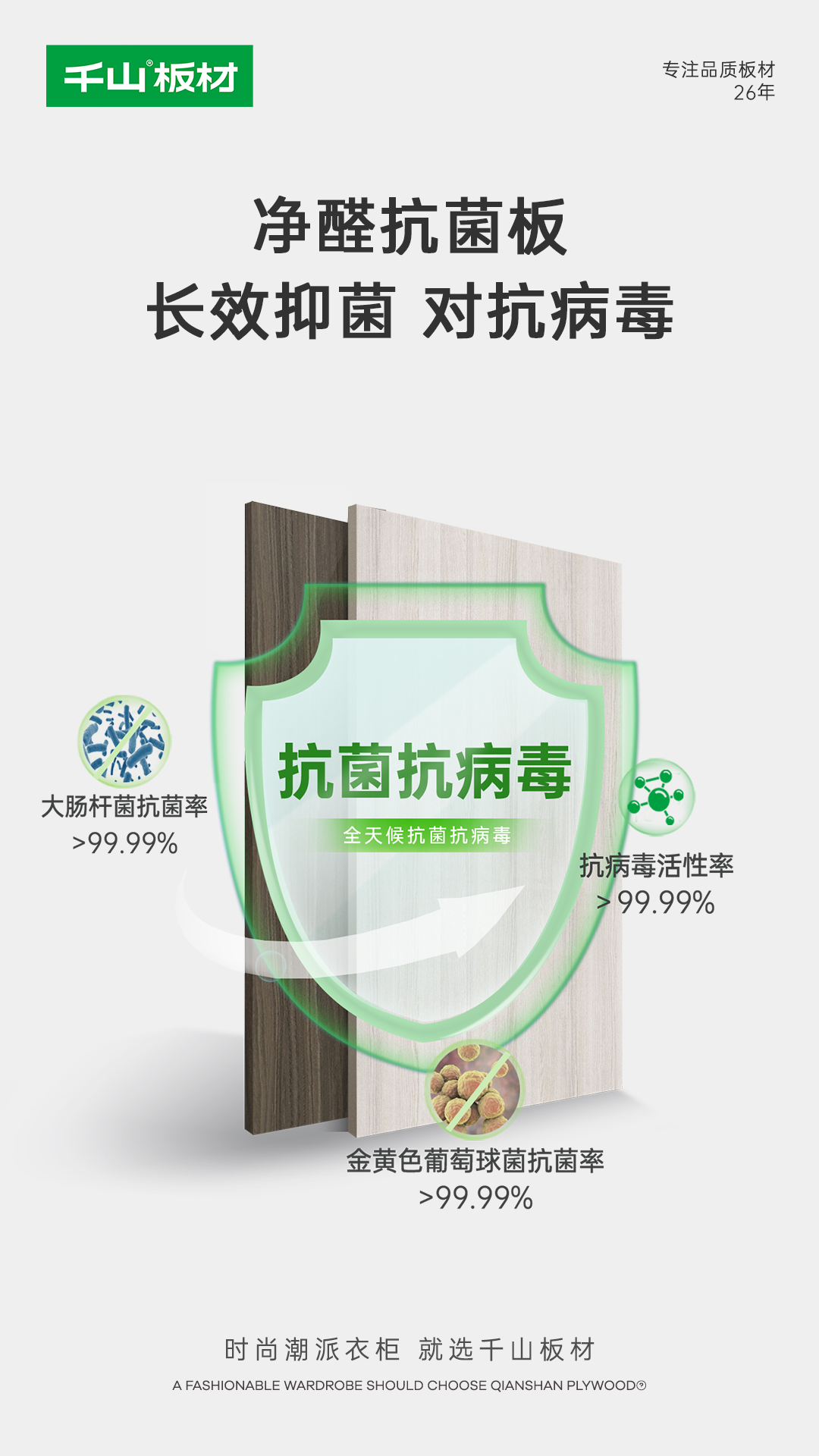 千山板材重磅升級新一代凈醛板,在國標ENF級和F☆☆☆☆環(huán)保標準的基礎上構建凈醛、抗菌、抗病毒的三重防護層,用實際行動踐行初心使命,為消費者帶來超環(huán)保的健康美好生活。