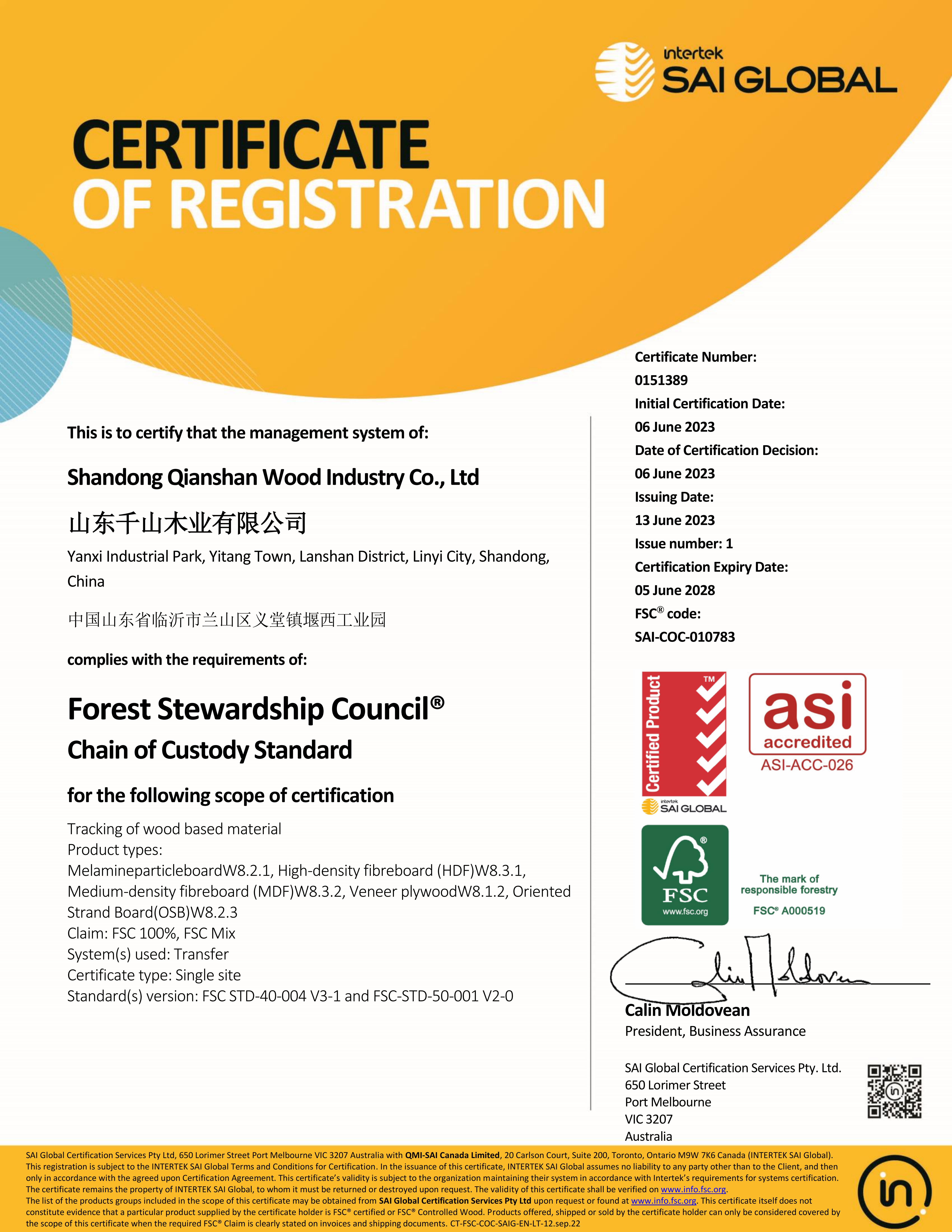 憑借對社會可持續(xù)發(fā)展的踐行和對環(huán)保理念的堅持,2023年千山再次順利通過“全球最嚴苛的”森林認證——FSC森林認證。該認證標志著一件產(chǎn)品來自經(jīng)過環(huán)境、社會和經(jīng)濟可持續(xù)管理的森林。可以說,消費者選擇具有FSC認證的產(chǎn)品,就是選擇了健康的森林和有保障的產(chǎn)品。