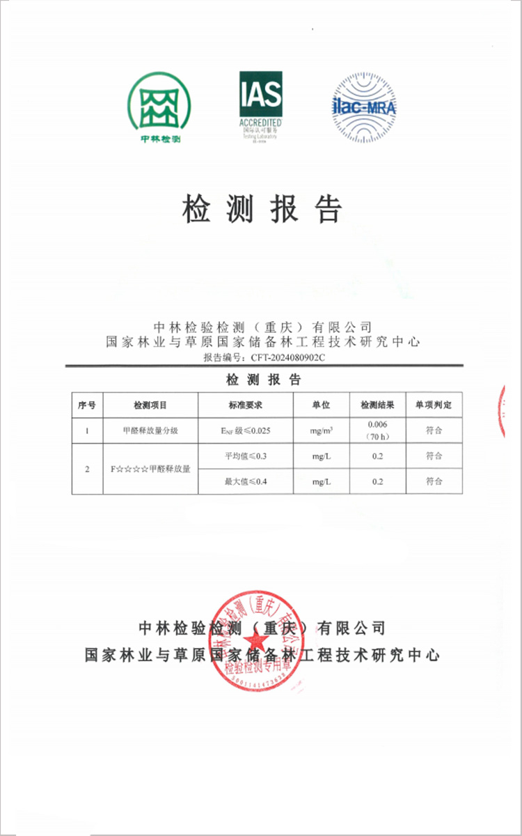 實木大刨片采用無醛MDI膠,安全性、穩(wěn)定性高,防水性能更佳。經(jīng)權威檢測,甲醛釋放量為0.017mg/m3,達HENF標準要求,同時通過ENF級和F4星雙檢測。