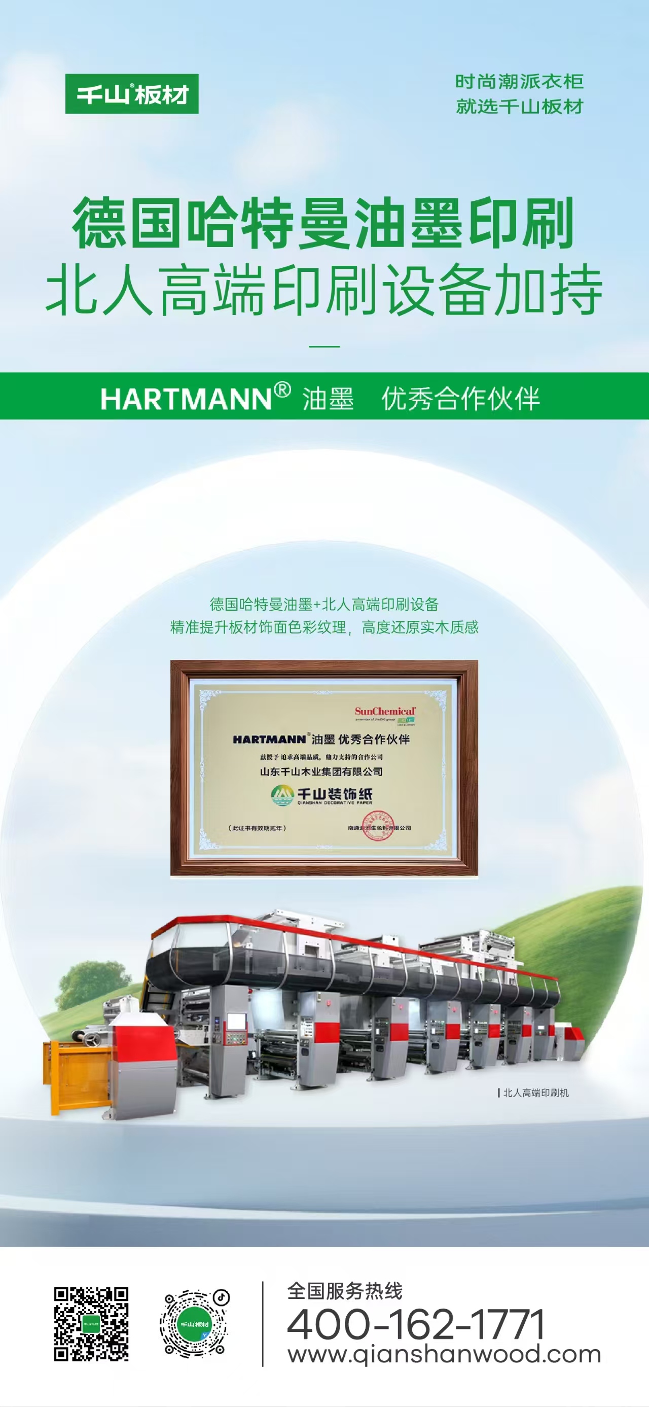 千山板材超強飾面采用一線夏王高壓底紙,德國哈特曼油墨印刷,北人高速印刷設備加持,紋理更清晰,色澤更持久,板材表面更加耐磨抗劃,經(jīng)久耐用。