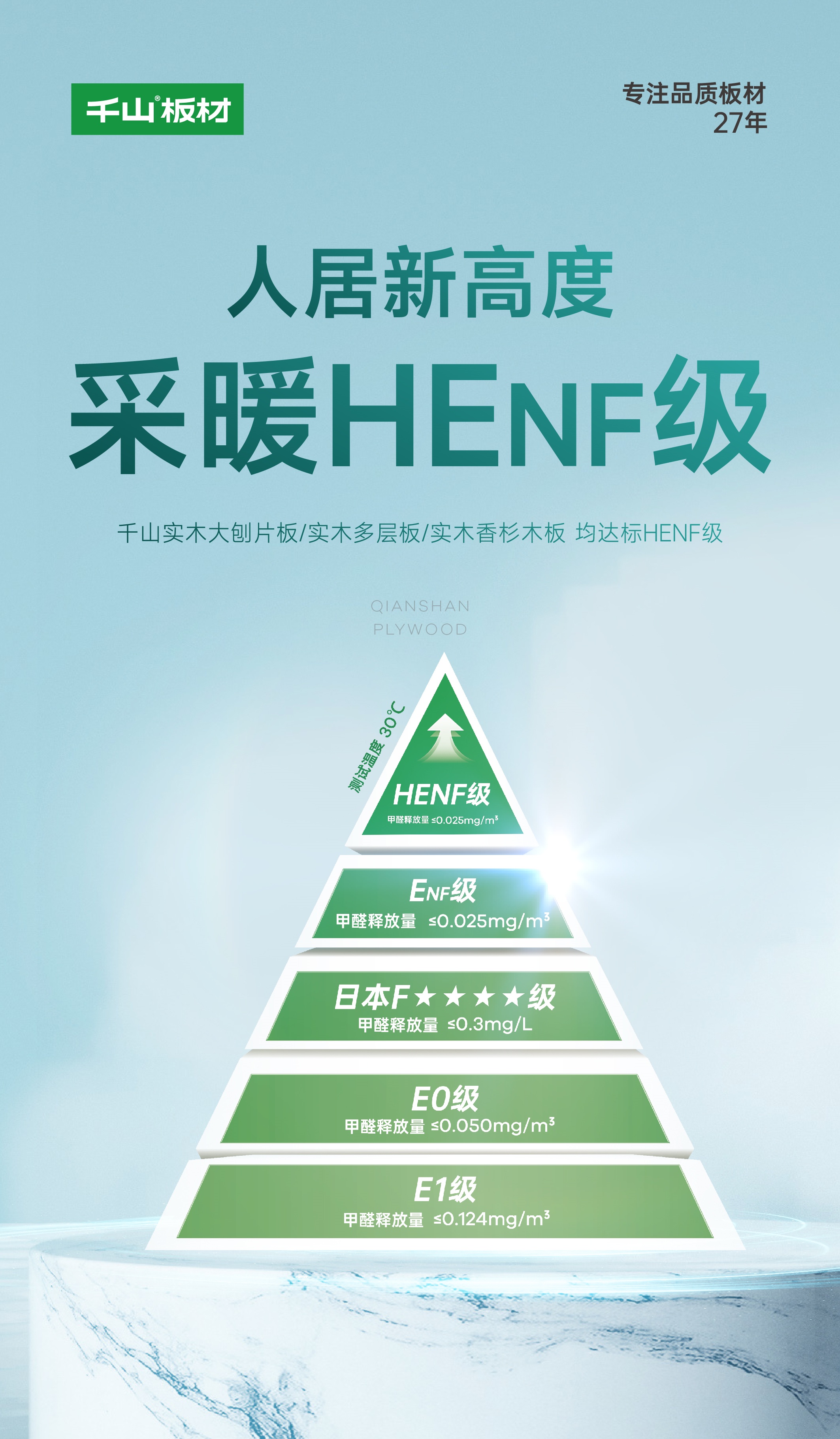 HEnf環(huán)保等級(jí)目前也是業(yè)內(nèi)天花板,相比新國(guó)標(biāo)甲醛釋放量,HEnf級(jí)板材在30度高溫檢測(cè)中甲醛釋放量更少,所以更適合使用在熱環(huán)境中。