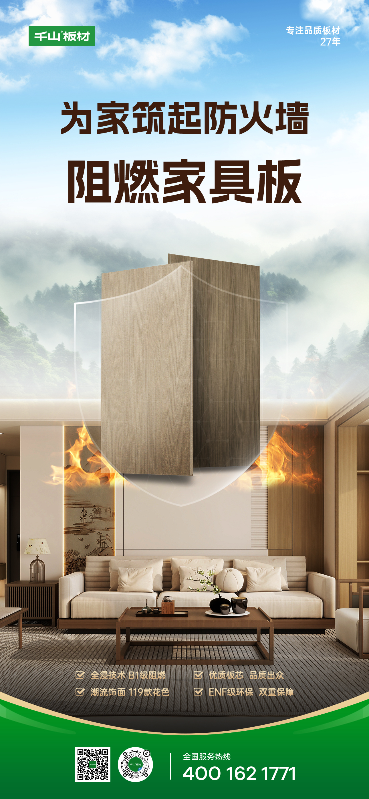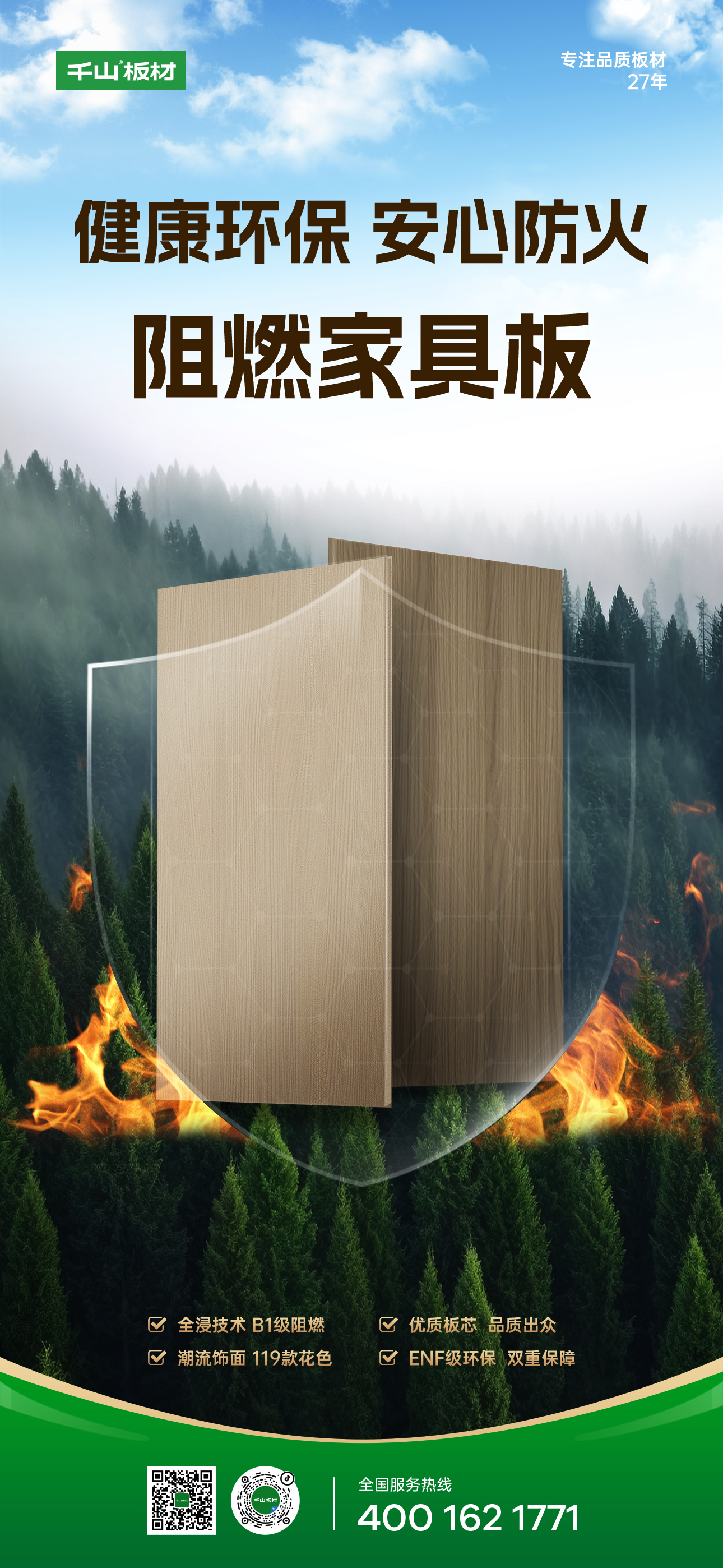 千山阻燃家具板,憑借卓越的品質和出色的阻燃性能,成為現(xiàn)代家居裝修中不可或缺的安全保障,構筑起家居空間安全防線,守護每一個家庭的幸福時光!