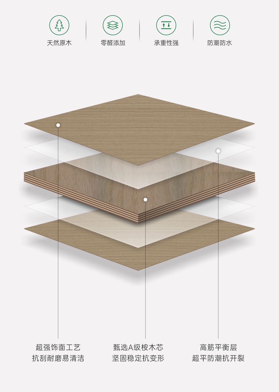 超強飾面采用德國哈特曼油墨印刷,紋理更清晰,色澤持久抗褪色,板材表面更加耐磨抗劃,經久耐用。阻燃家具板花色涵蓋優(yōu)品系列、木紋系列、同步系列、純色系列,高顏美學融入產品,打造時尚家居。阻燃家具板的優(yōu)質基材搭配無醛環(huán)保工藝,使其甲醛釋放量達國標最高環(huán)保等級ENF級。環(huán)保性和阻燃性的雙重保障,為我們創(chuàng)造安心健康的室內環(huán)境。