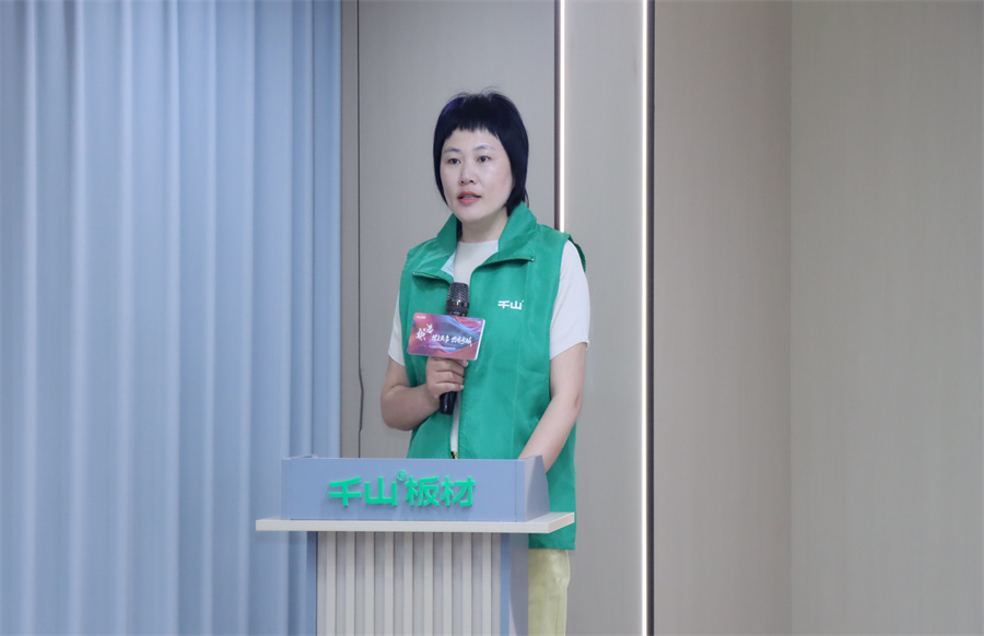 千山應(yīng)用設(shè)計研發(fā)中心宋英豪設(shè)計師分享了千山板材的場景化應(yīng)用,通過三維動畫融合產(chǎn)品展示,從花色肌理、材質(zhì)工藝到空間應(yīng)用場景進(jìn)行立體化動態(tài)演繹,并將針對終端設(shè)計效率的痛點持續(xù)更新產(chǎn)品庫,推動終端服務(wù)的再升級。
