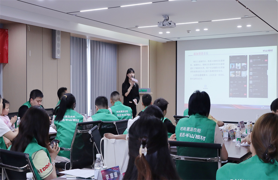 千山板材河南運營中心總經(jīng)理程效章致辭。程總表示,短視頻和直播已成為搶占市場的核心賽道,抖音也將是經(jīng)銷商伙伴們開拓新市場的“超級武器”,希望伙伴們通過此次賦能特訓(xùn)掌握短視頻的營銷密鑰,在家居藍(lán)海中共贏未來!