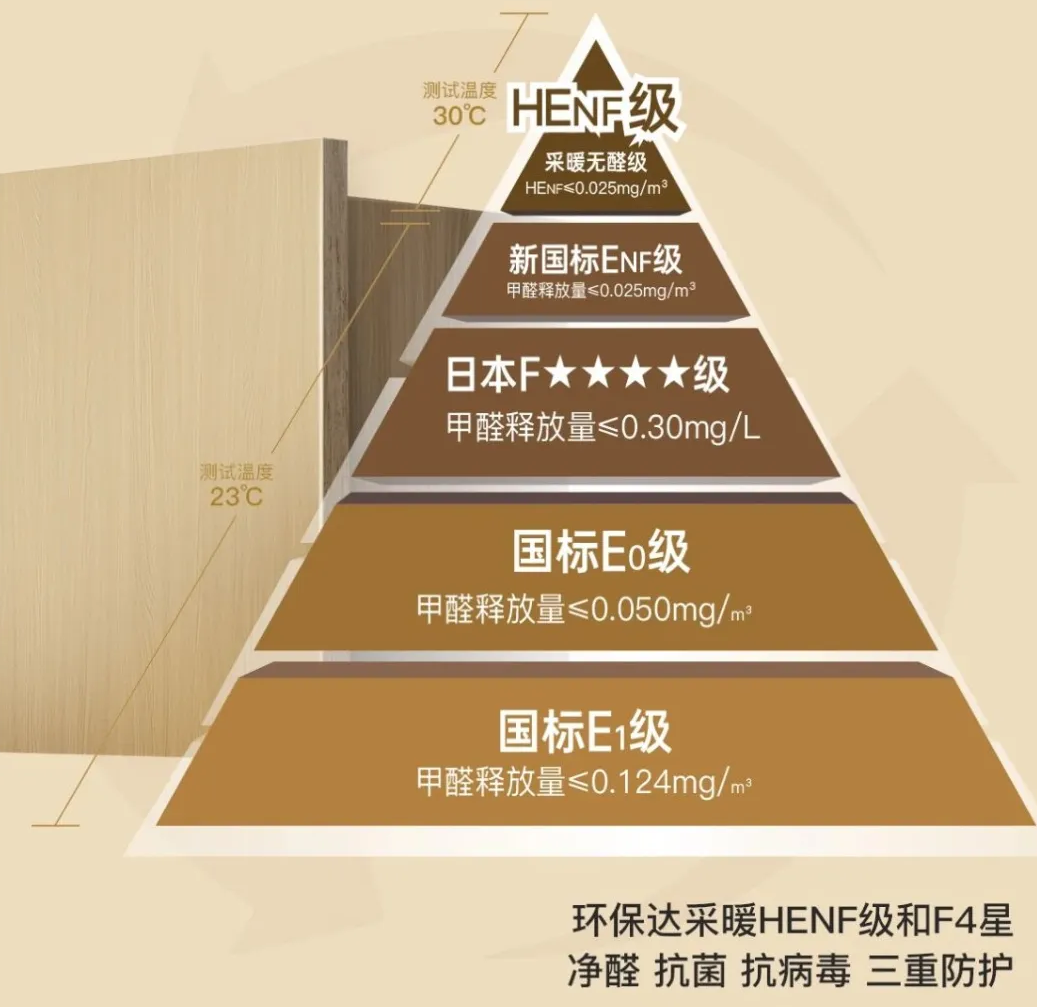 采用無(wú)醛MDI膠,生產(chǎn)全過(guò)程無(wú)醛添加,環(huán)保達(dá)采暖HENF級(jí),同時(shí)通過(guò)F4星環(huán)保標(biāo)準(zhǔn)檢測(cè),以“雙環(huán)保”直擊高環(huán)保客群需求。離子晶體板在北方供暖及南方濕熱環(huán)境條件下,甲醛釋放量仍可保持極低水平。