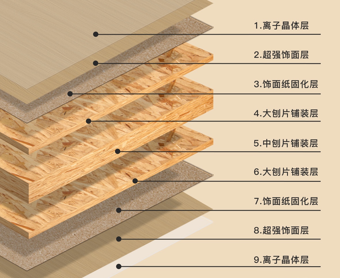 定向鋪裝芯層+固化層+離子晶體層,穩(wěn)定堅韌結構能夠經(jīng)受南北方環(huán)境考驗,規(guī)避門板變形和表層開裂問題。
