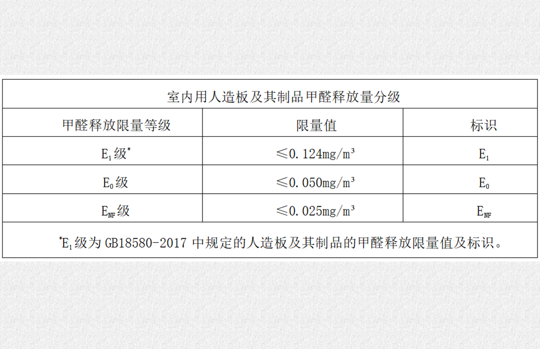 隨著人們生活水平提高,大眾環(huán)保意識(shí)逐漸增強(qiáng),為了順應(yīng)時(shí)代需要,2021年10月1日開始,《GB/T 39600-2021 人造板及其制品甲醛釋放量分級(jí)》標(biāo)準(zhǔn)文件正式實(shí)施,即E1級(jí)≤0.124mg/m3、E0級(jí)≤0.050mg/m3和ENF級(jí)≤0.025mg/m3。