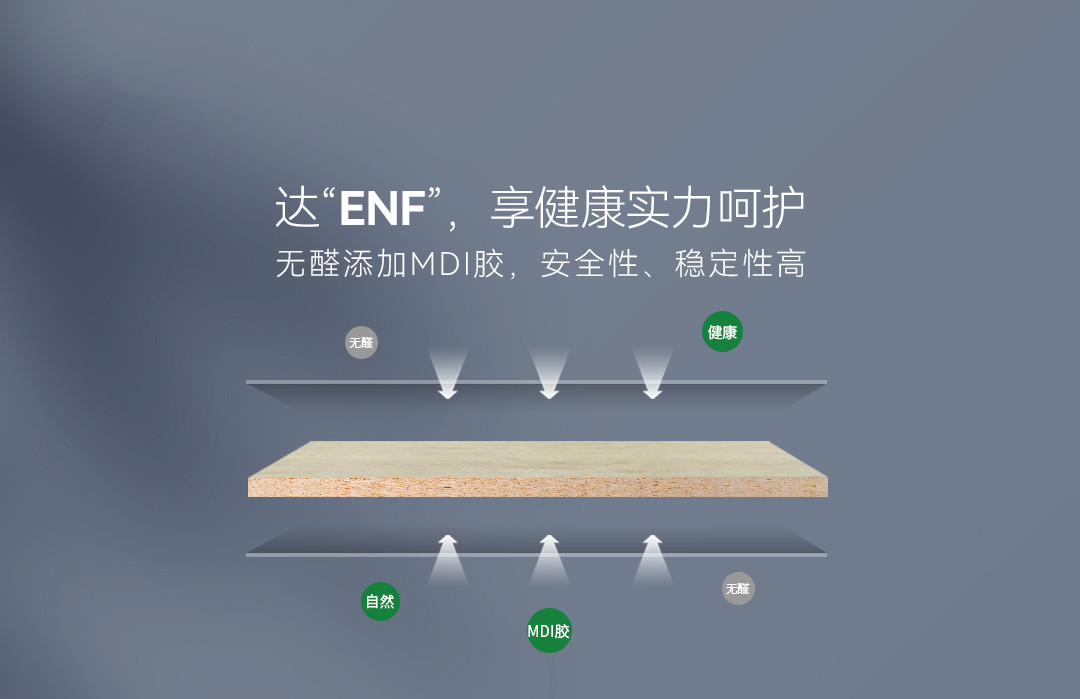 超芯板無醛添加MDI膠,安全性、穩(wěn)定性高,防水性能更佳,板材環(huán)保等級可達(dá)ENF級,呵護(hù)綠色健康家居生活。